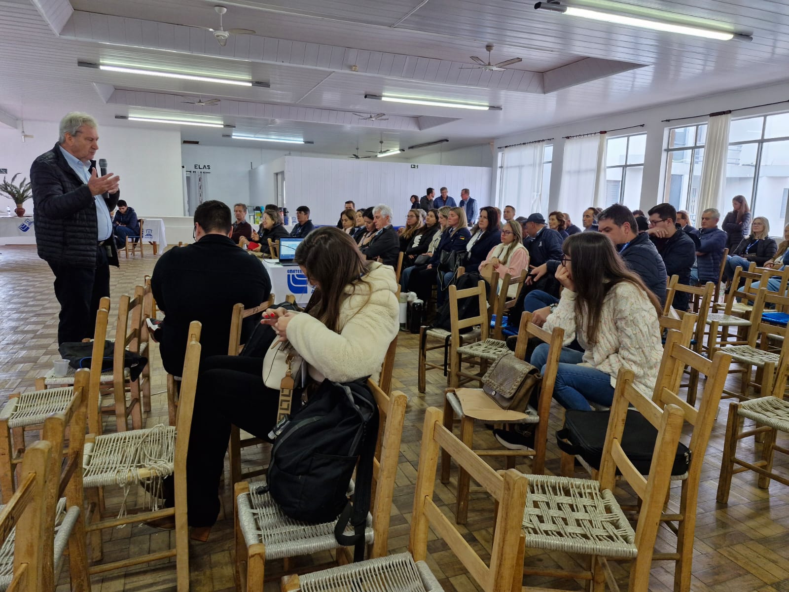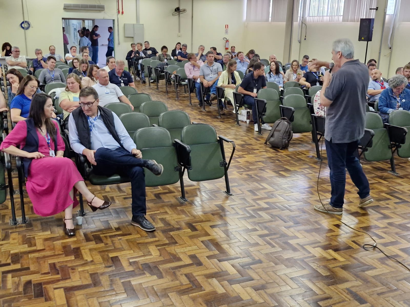 Nas fotos abaixo, registros da participação do Diretor Superintendente Ricardo Altair Schwarz e do público presente nos eventos (da esquerda para direita: Regional de Frederico Westphalen e o Regional de Soledade).